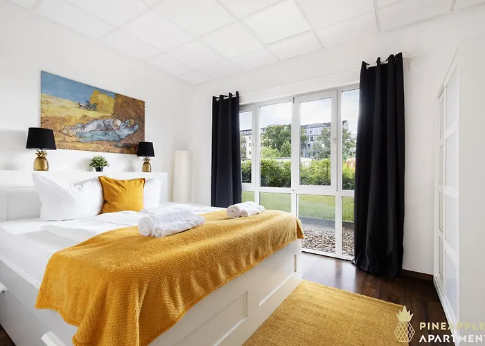 Τοποθετημένο στην περιοχή Altstadt σε απόσταση 20 λεπτών με τα πόδια από Τσβίνγκερ, το διαμέρισμα Pineapple Apartments Dresden Mitte 50 μ^2 φιλοξενεί μέχρι και 6 άτομα. Αυτό το διαμέρισμα 2 υπνοδωματίων διαθέτει ηλεκτρικό βραστήρα, φούρνο και σκεύη κουζίνας στην κουζίνα.